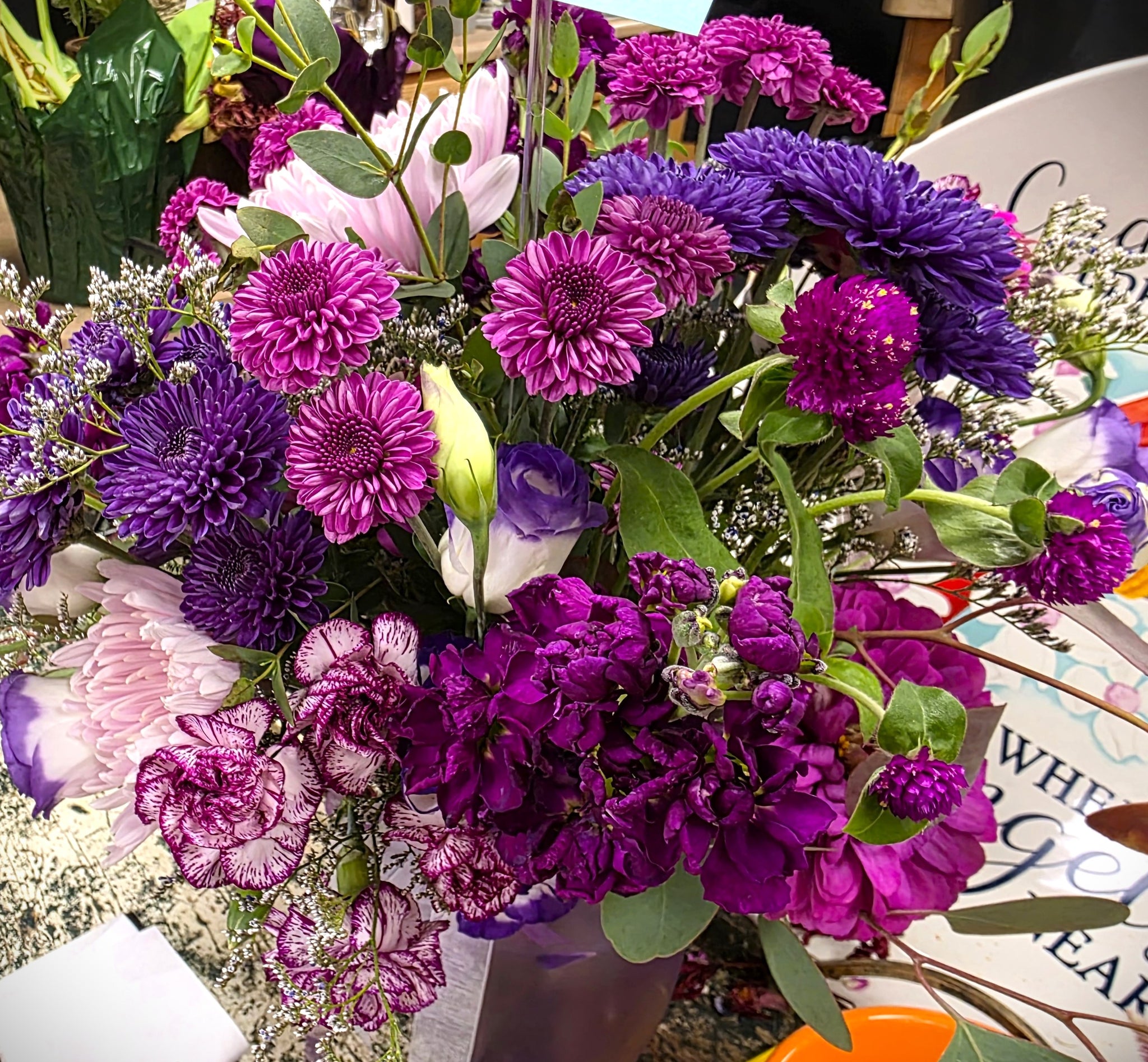 2. COLOR: Florist Choice* OR enter your color preference in the 'Notes Section' at check-out. *Valentine's Day colors: Primarily shades of red, pink and purple with white and green accents.