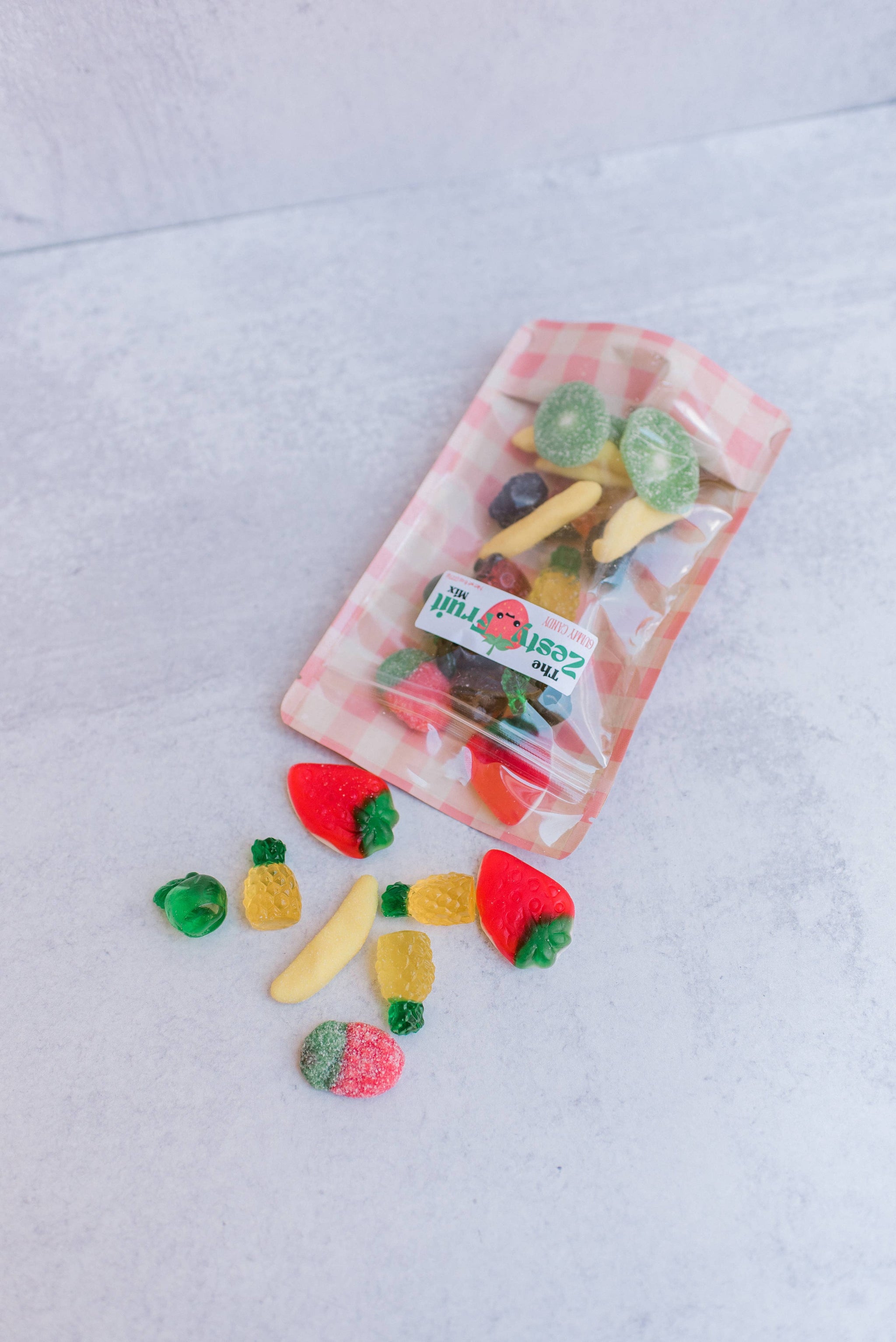 Taste the orchard in every bite with The Fruit Mix. This colorful assortment features chewy gummies shaped and flavored like classic fruits—think juicy strawberries, zesty oranges, sweet peaches, and more. Each bag offers a deliciously balanced blend of fruity favorites that look as good as they taste.