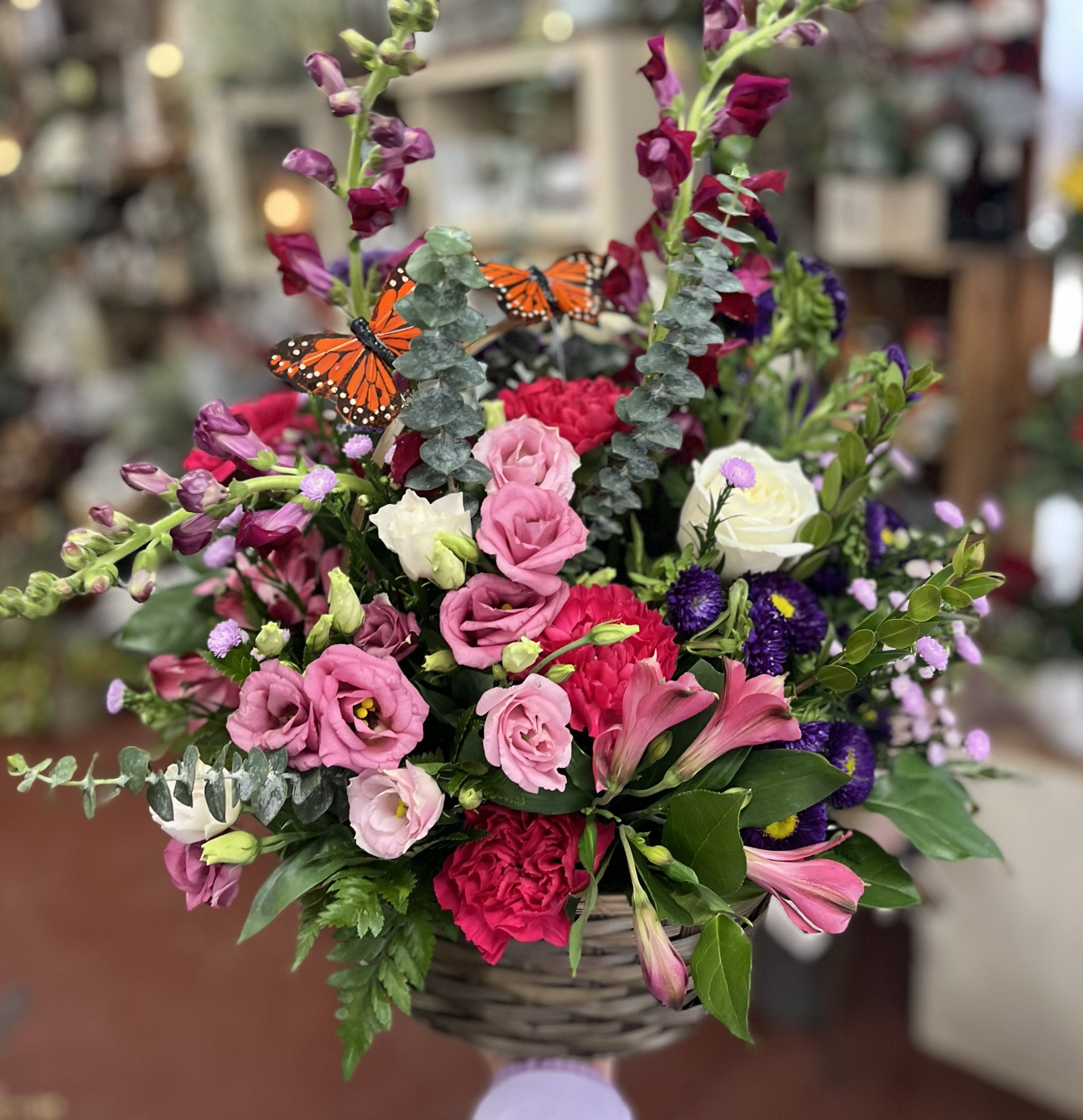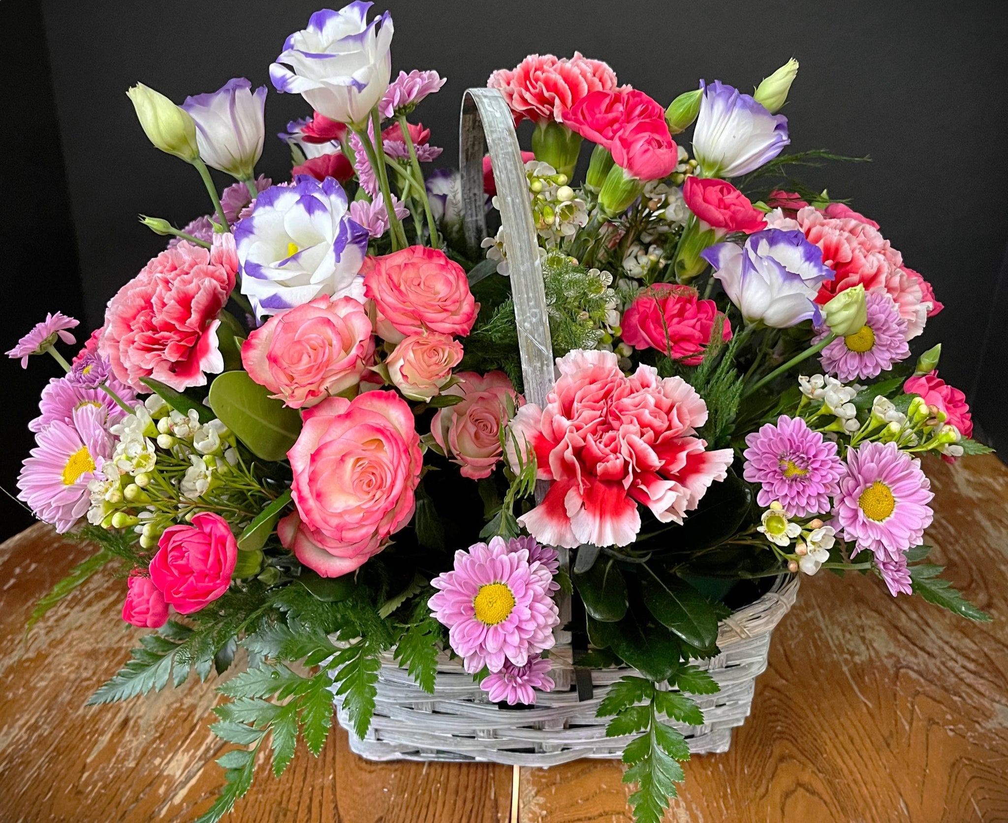 Please note: All flower basket/container orders will be filled with seasonal flowers and greenery as available and include corresponding basket/container size. If you would like specific flowers in your basket/container, please enter this information into the 'Notes Section' at check-out and we will do our best to include these in your bouquet. Substitutions will be of equal or greater value. Call us at 319-624-3121 to order a custom arrangement.