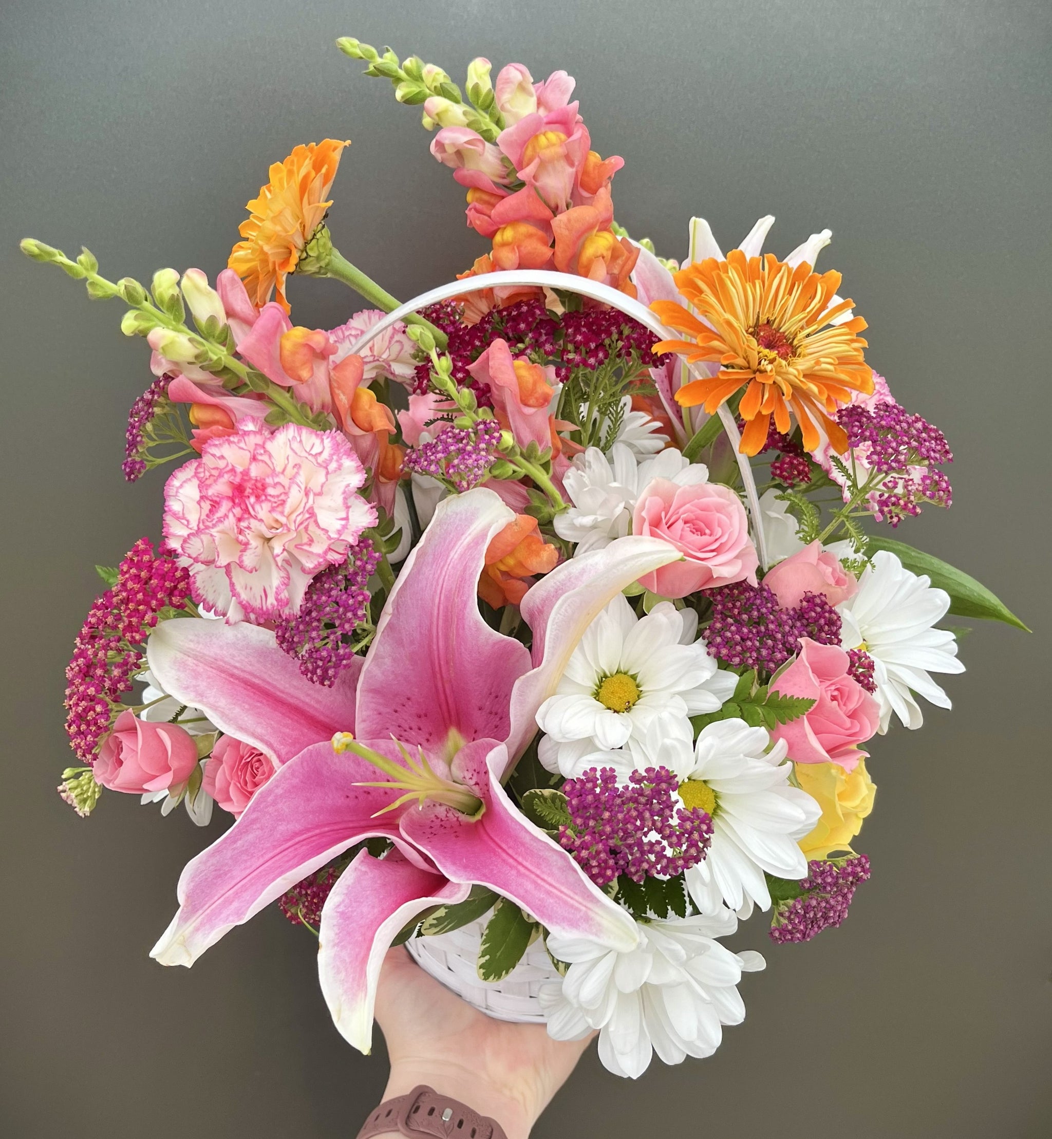 Colors: Valentine's colors - shades of red, pink, purples, whites (and pops of color) with greenery. We'll choose for you or please list your color preferences(s) in the 'Notes Section' during checkout.