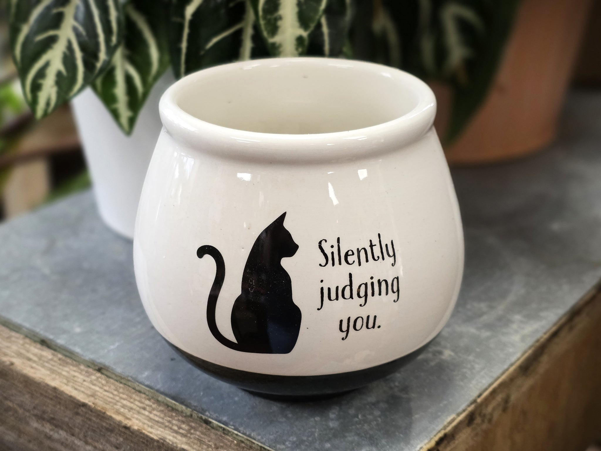 Cat ceramic planter with succulent or plant (plant type is Florist's Choice ) with 3 different designs/sayings from which to choose: