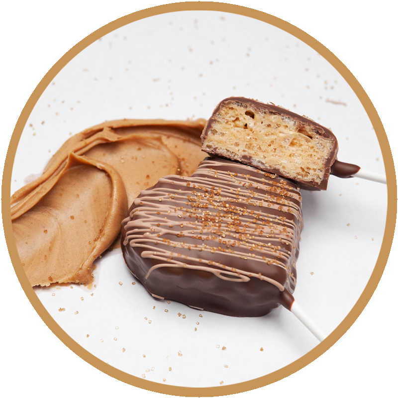 PEANUT BUTTER KRISPIE POP covered in chocolate