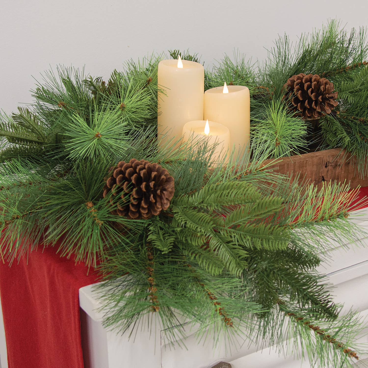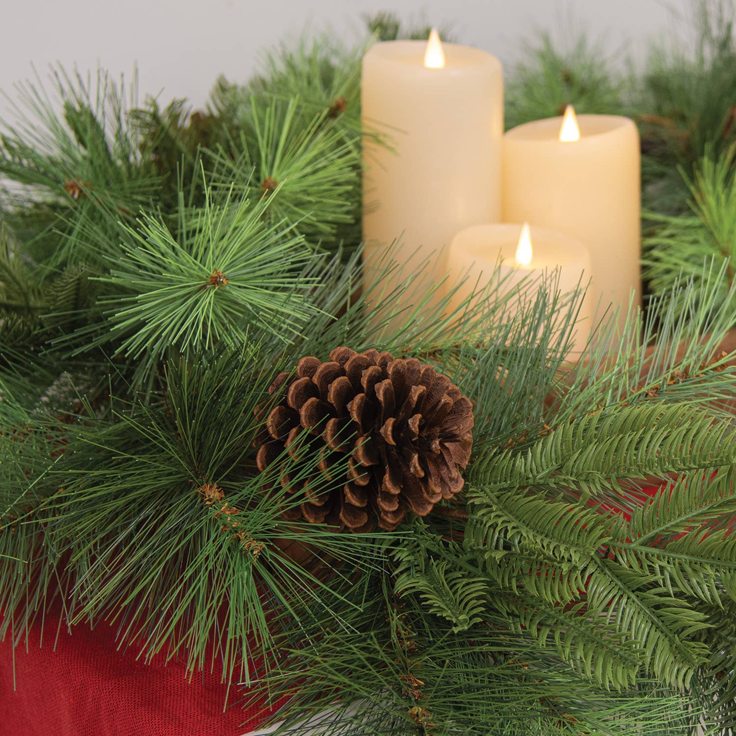 The Forest Path Pine Garland is a decorative garland that adds woodland charm to your home décor. The garland makes a dramatic addition to a mantel and looks lovely draped over a doorway or window during the Winter and Christmas season. Pair it with a coordinating wreath or candle ring for a complete look. Measures 72 inches long.