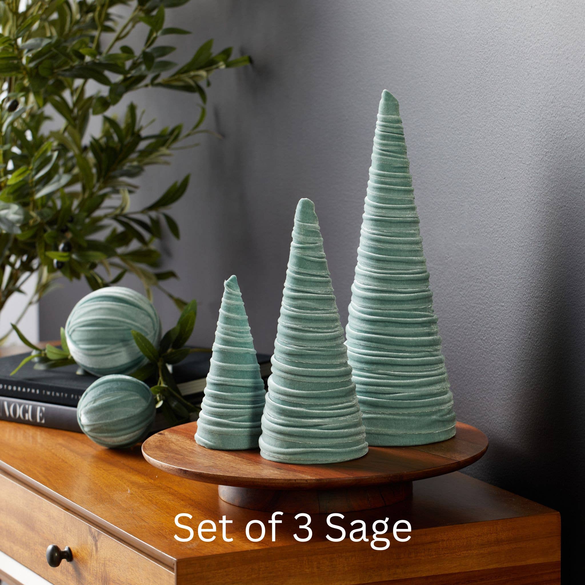 Trees Velvet Set of 3 Holiday Tabletop, Sophisticated Decor: Light Ivory