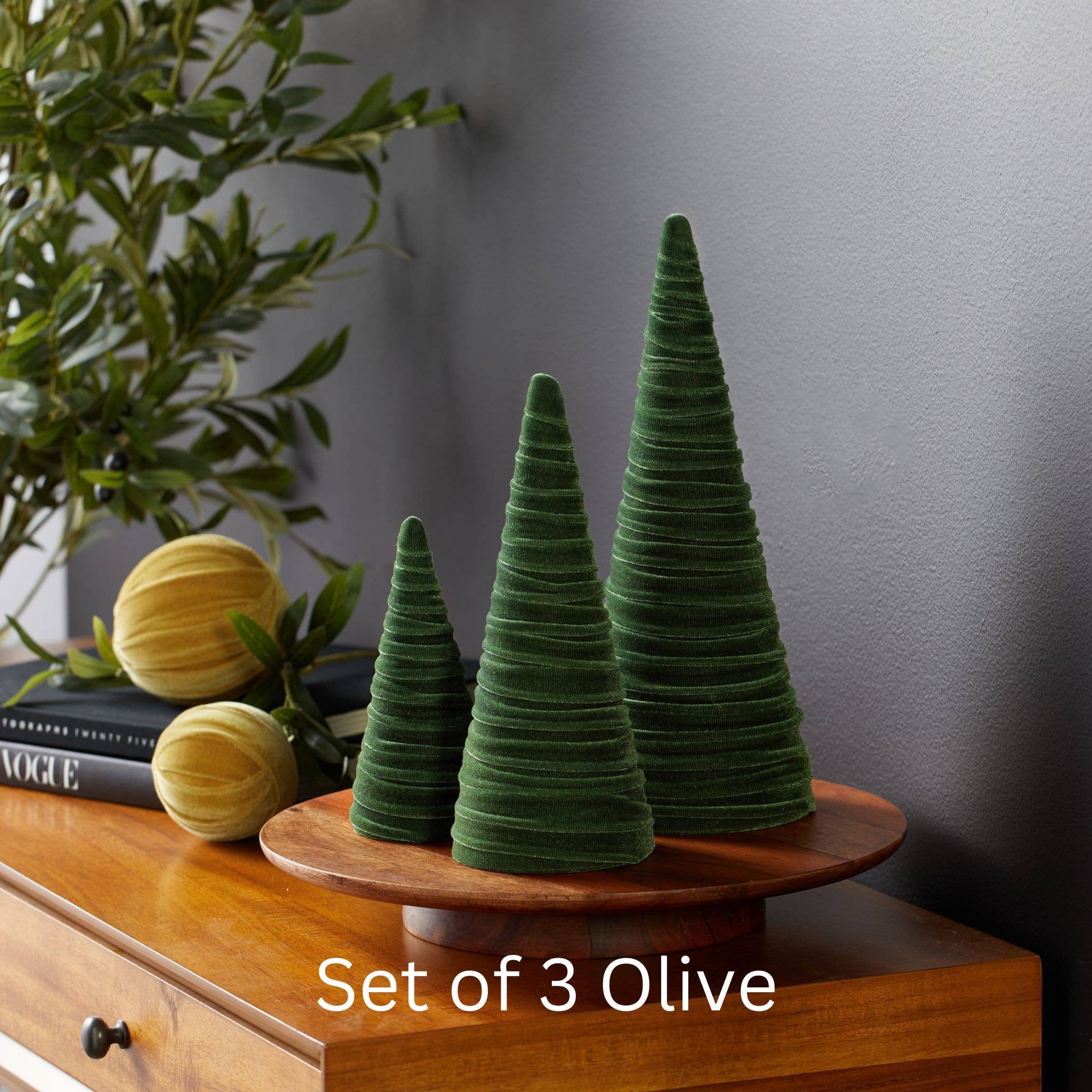 PRODUCT DETAILS: Set of 3 Velvet Cones - SMALL 3” diameter by 6.5” tall, MEDIUM 4” diameter by 10” tall, LARGE 5” diameter by 13” tall. Select "Assorted Best Sellers" and you'll receive a variety of our most popular colors. Specify the quantity you would like and Michelle will individually choose an assortment for you.