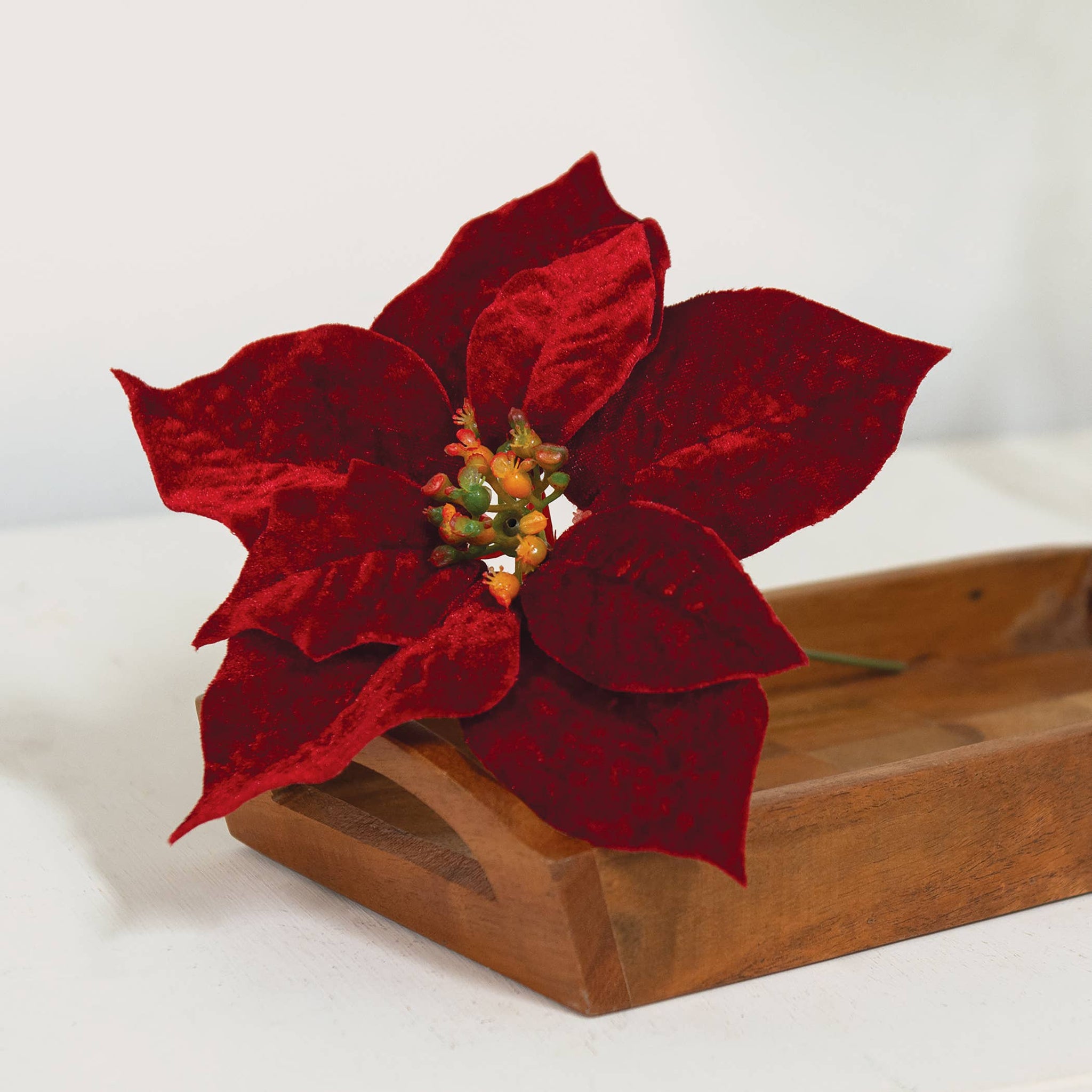 Winter Party Velvet Poinsettia Pick - 9"H